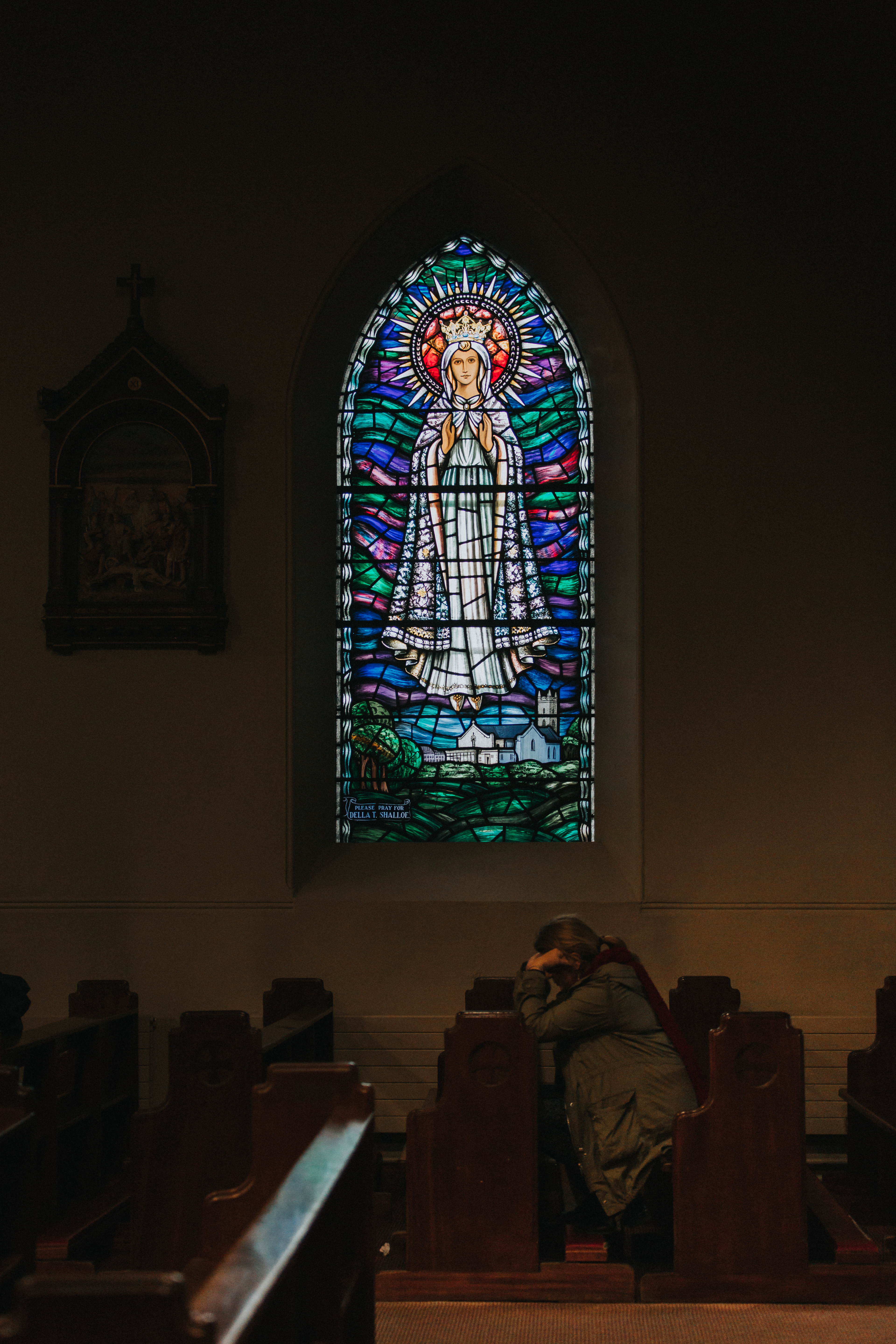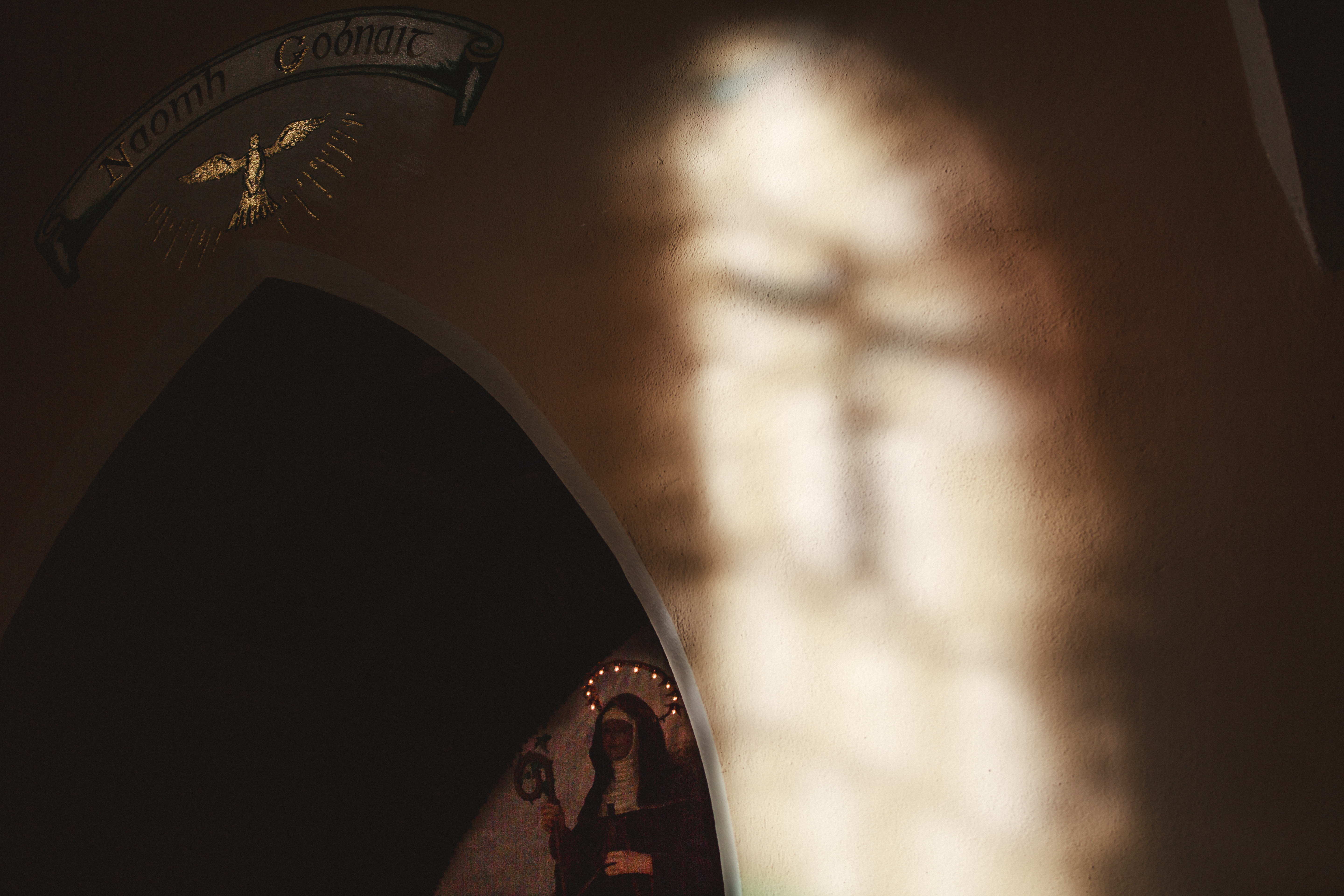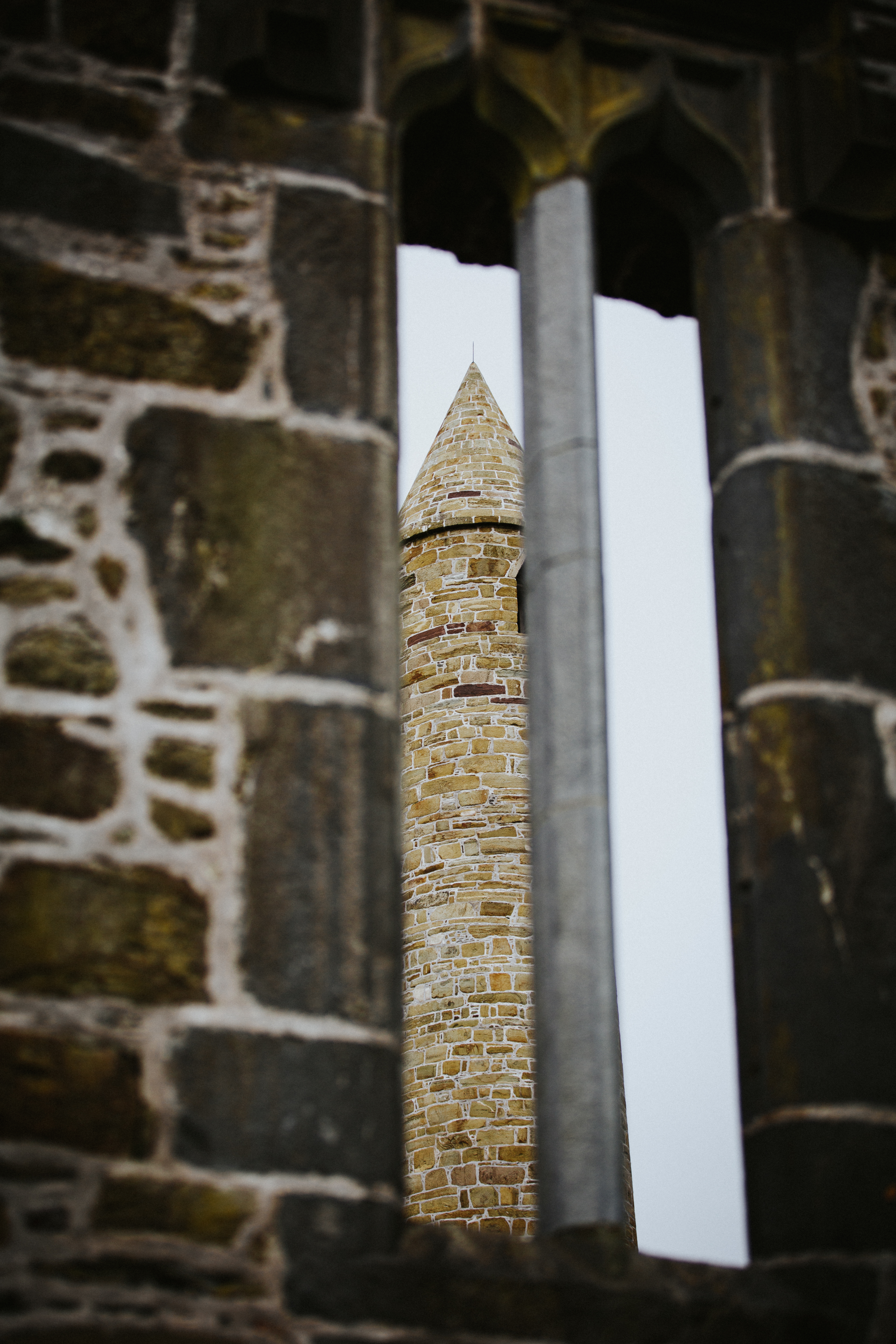 Round Towers and Windows of Light brings together images of Ireland’s round towers and stained glass windows. The towers rise solid and enclosing, marking the landscape with height and endurance, while the windows open light inward…..both woven into the devotional landscape of Ireland.