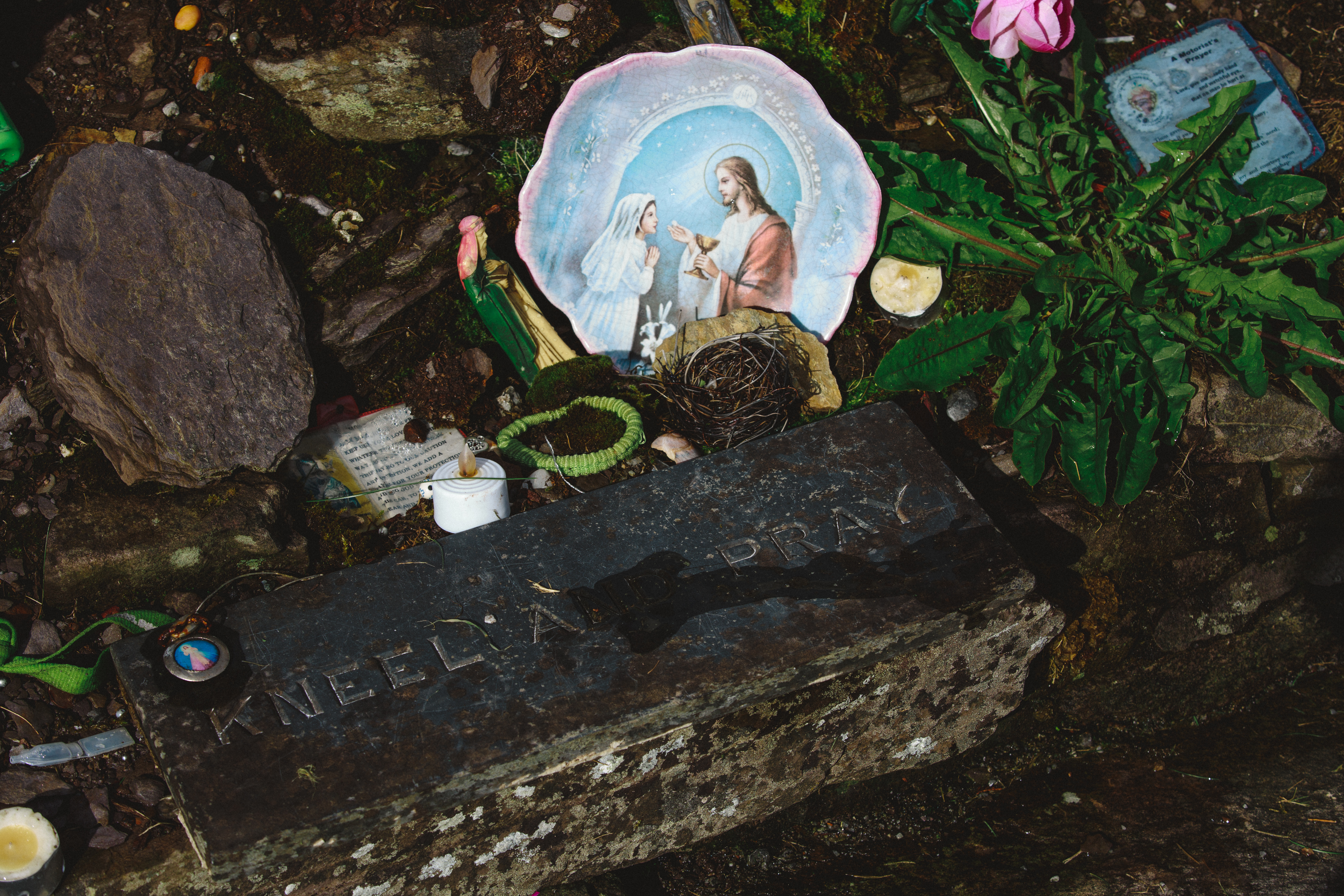 The Holy Well and Prayer Tree brings together a selection of sites from around Ireland where devotion continues to gather quietly. Beside these holy wells, items are often left behind—rags tied to trees, small pieces of cloth or fabric placed as prayers of hope and petition. Many of these wells are associated with particular illnesses or needs. These photographs attend to the ongoing devotion of these sites, where faith is practiced and passed on.